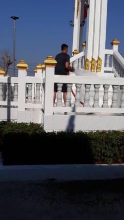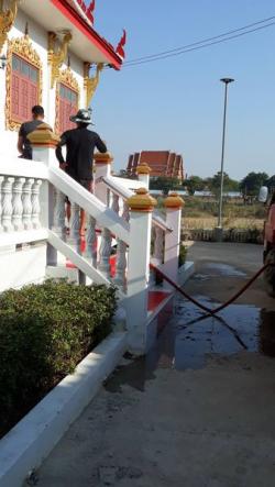งานป้องกันฯ นำรถบรรทุกน้ำฉีดล้างทำความสะอาดบริเวณ เมรุวัดบางกะทิง ต.หัวเวียง