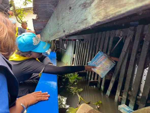 ลงพื้นที่ มอบถุงยังชีพและเสื้อชูชีพ ให้แก่ครอบครัวคุณกฤตพร โพธิสุทธ อายุ 32 ปี อาศัยอยู่บ้านเลขที่ 21 หมู่ที่ 8