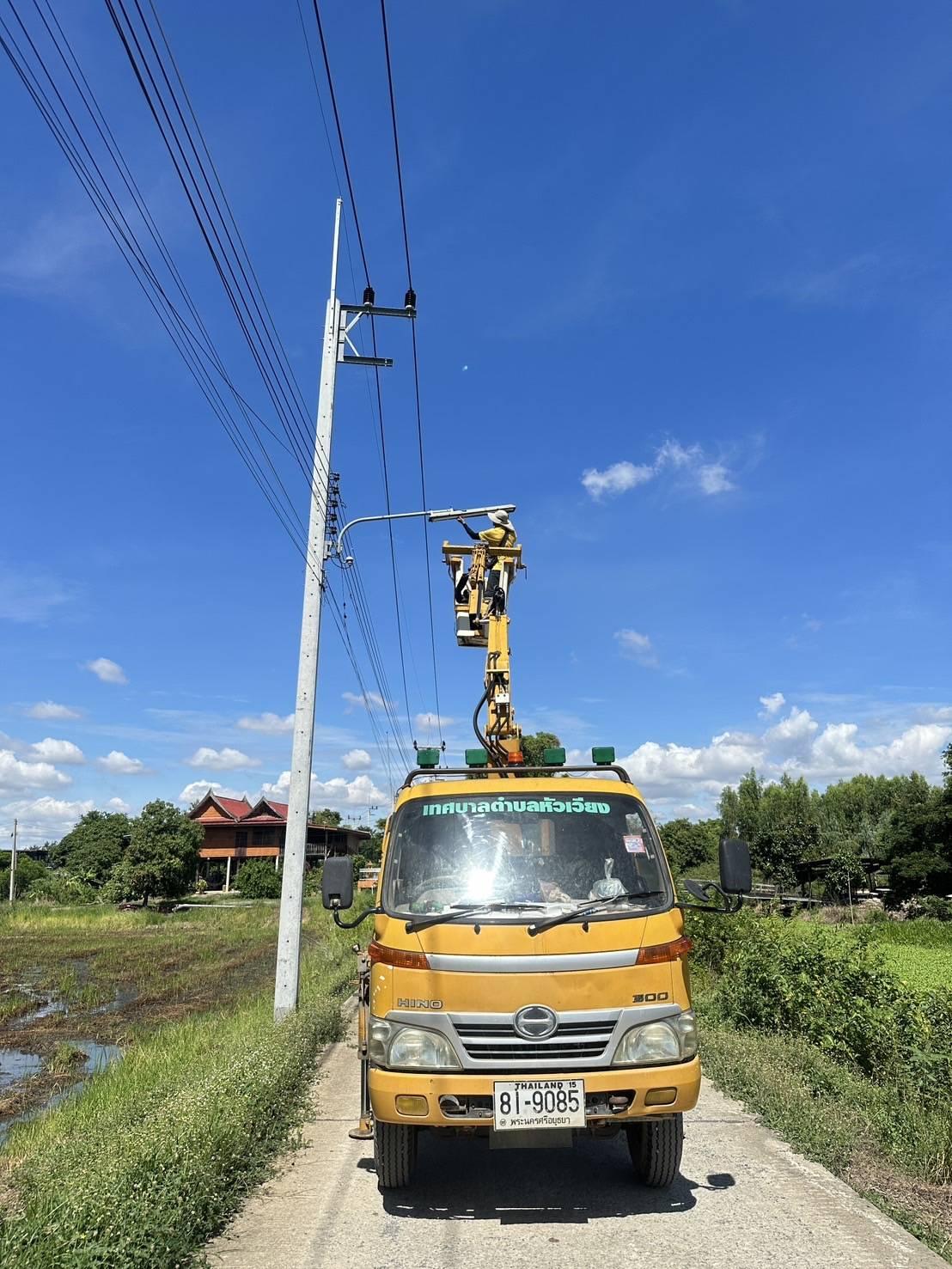 งานไฟฟ้าสาธารณะ ลงพื้นที่หมู่ที่ 5 ต.หัวเวียง ได้เปลี่ยนโคมไฟฟ้าที่ชำรุด และซ่อมไฟฟ้าส่องสว่าง ตามคำร้องในไลน์กลุ่มงานป้องกันฯเทศบาลต.หัวเวียง