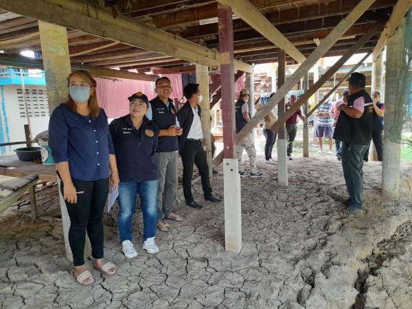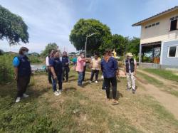 นายนิรุตติ์ โกมลวานิช รองปลัดเทศบาลรักษาราชการแทนปลัดเทศบาล งพื้นที่ตรวจสอบข้อเท็จจริง กรณีตลิ่งทรุดตัว บริเวณบ้านนายวิเชียร ศรีเจริญ บ้านเลขที่ 46 หมู่ที่ 1 ต.หัวเวียง