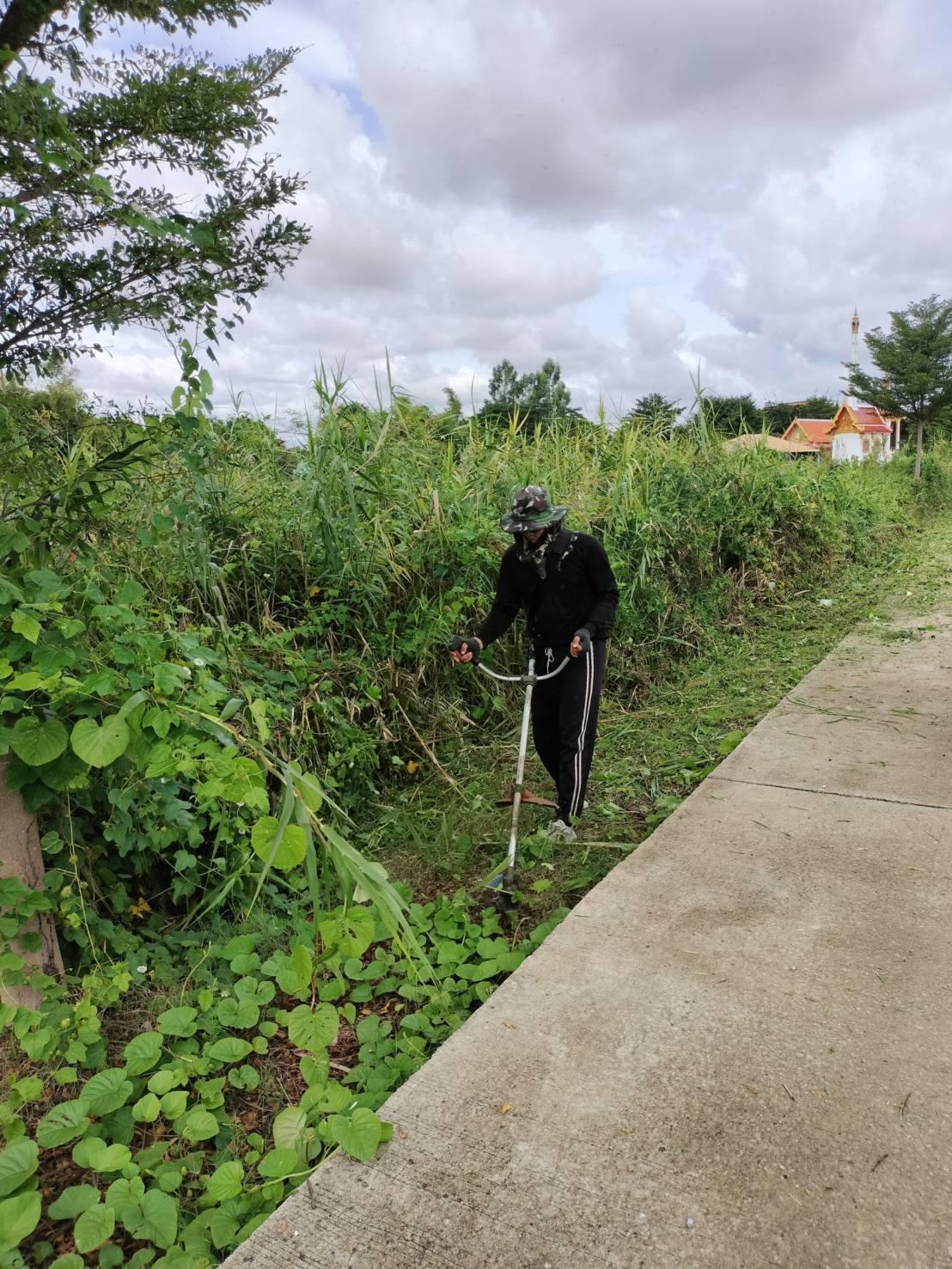 กองสาธารณสุขและสิ่งแวดล้อม ลงพื้นที่ตัดหญ้า ปรับแต่งภูมิทัศน์ บริเวณถนนสายใน หมู่ที่ 3 ต.หัวเวียง