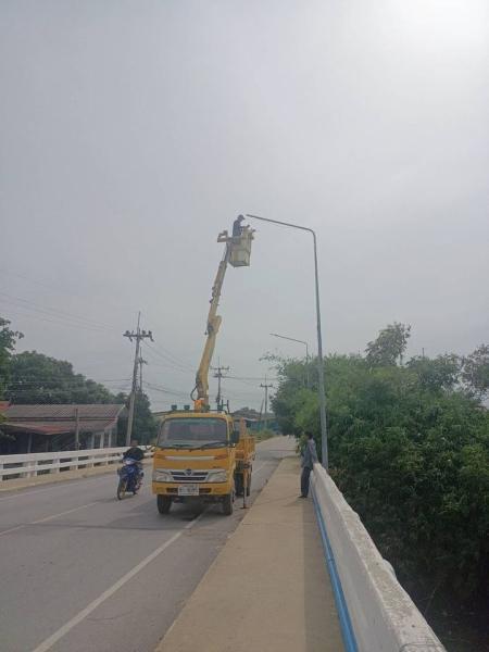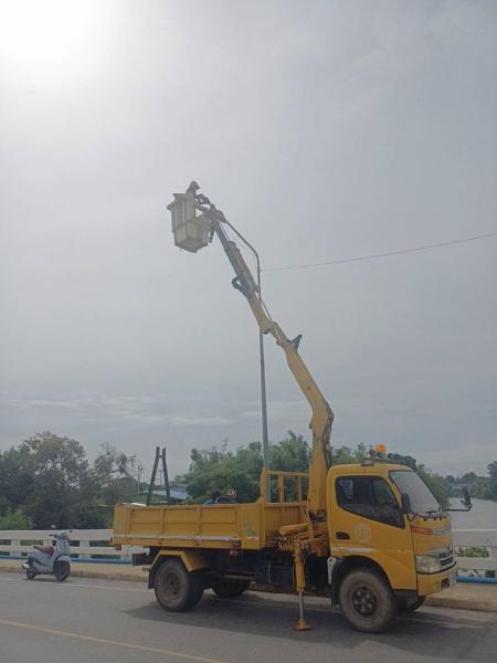 นายสุพล สนธิ รองนายกเทศมนตรี ติดตามงานไฟฟ้าสาธารณะ ลงพื้นที่ซ่อมบำรุงไฟฟ้า บริเวณ หมู่ที่ 13 ตำบลหัวเวียง