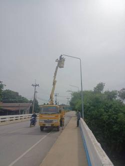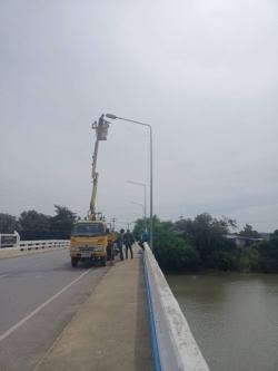 งานไฟฟ้าสาธารณะลงพื้นติดตั้งโครมไฟLED ขนาด100w. จำนวน3ชุด บริเวณสะพานวัดบันไดช้าง หมู่ที่ 7 ตำบลหัวเวียง