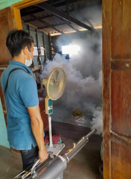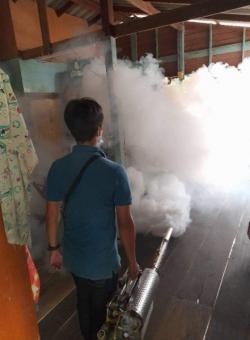 กองสาธารณสุข ฯ ลงพื้นที่ฉีดพ่นหมอกควันกำจัดยุงลาย บริเวณบ้านผู้ป่วยไข้เลือดออก หมู่ที่ 1 ต.หัวเวียง