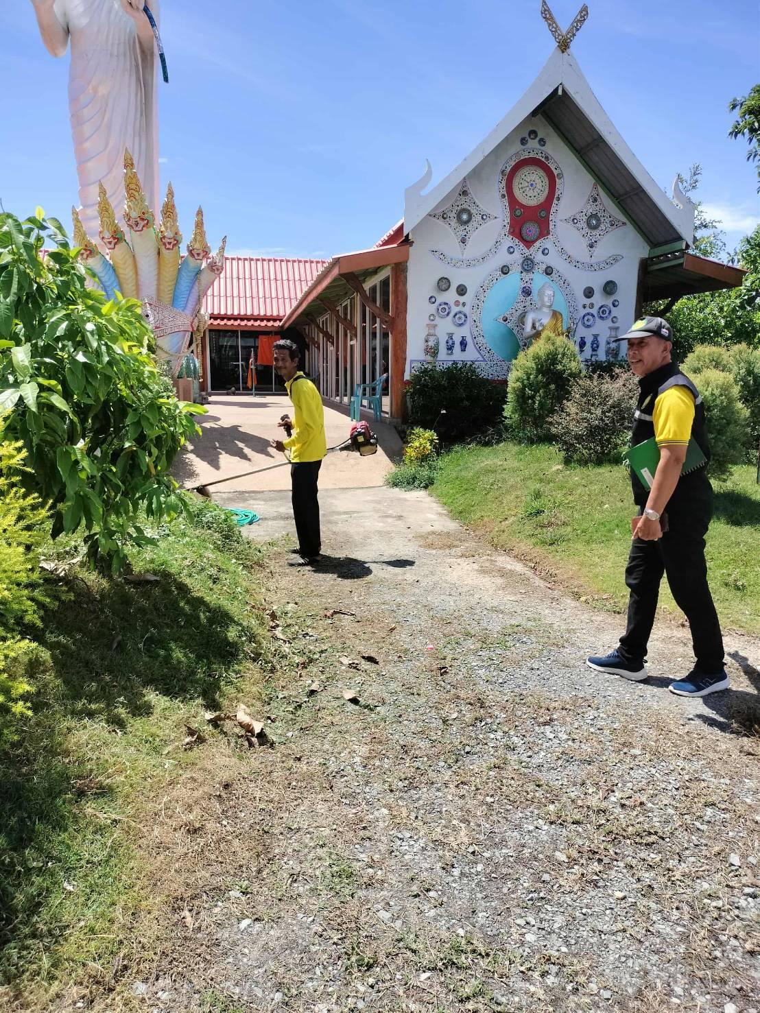 ลงพื้นที่ตัดหญ้า กวาดใบไม้ ทำความสะอาด บริเวณลานหน้าองค์พระยืน ณ วัดโบสถ์(บน) ตำบลบ้านกระทุ่ม เพื่อความสะอาดเป็นระเบียบเรียบร้อย
