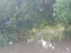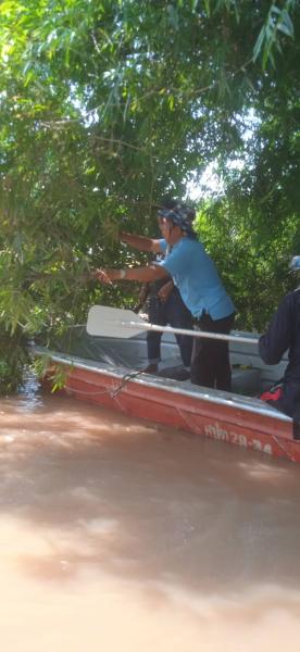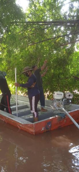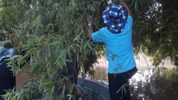งานป้องกันฯ ตัดกิ่งไม้ไผ่ตรงบริเวณปากครองหัวไร่แตงหมู่ที่ 8 ต.หัวเวียงให้ชาวบ้านได้พายเรือเข้าออกได้สะดวก