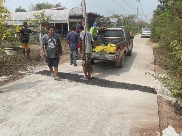 กองช่างลงพื้นที่ซ่อมแซมถนนลงยางแอลฟัทล์หรือยางมะตอยในหมู่ที่ 3,6,9 ตำบลบ้านกระทุ่ม และหมู่ที่ 7 ตำบลหัวเวียง