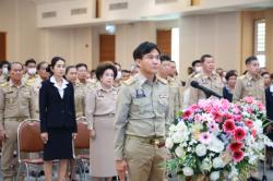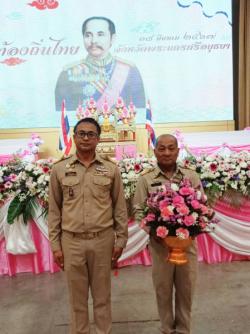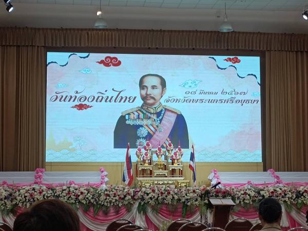 นายนิรุตติ์ โกมลวานิช รองปลัดเทศบาลรักษาราชการแทนปลัดเทศบาล และนายพิเชษฐ์ พวงสวัสดิ์ หัวหน้างานป้องกันและบรรเทาสาธารณภัยอาวุโส ร่วมพิธีถวายพานพุ่มดอกไม้สดสักการะฯ พระบาทสมเด็จพระจุลจอมเกล้าเจ้าอยู่หัว เนื่องในวันท้องถิ่นไทย ประจำปี 2567 ณ หอประชุมพระพิรุณระลึกโปรดเกล้าฯ มหาวิทยาลัยเทคโนโลยีราชมงคลสุวรรณภูมิ ศูนย์พรพะนครศรีอยุธยา หันตรา อำเภอพระนครศรีอยุธยา จังหวัดพระนครศรีอยุธยา