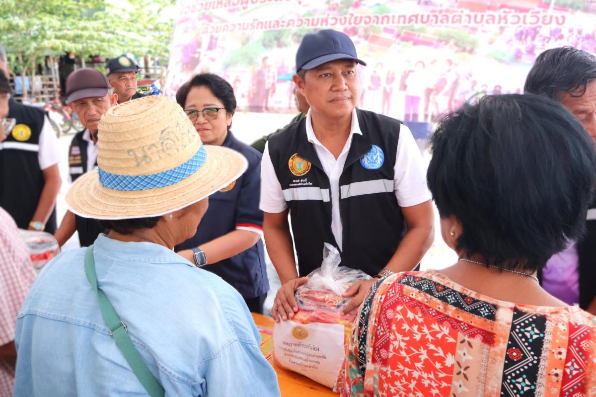 นายธเนศ สนธิ นายกเทศมนตรีตำบลหัวเวียง พร้อมด้วยคณะผู้บริหาร ที่ปรึกษาฯ เลขานุการฯ สมาชิกสภาเทศบาล หัวหน้าส่วนราชการ กำนัน ผู้ใหญ่บ้าน ผู้ช่วยผู้ใหญ่บ้าน พนักงานเทศบาล ร่วมมอบถุงยังชีพ และแจกยาเวชภัณฑ์ ในนามเทศบาลตำบลหัวเวียง เพื่อช่วยเหลือผู้ประสบอุทกภัย ในหมู่ที่ 1,2,8,9,10,11 ตำบลหัวเวียง จำนวน 414 ชุด ณ ลานดินแยกศาลาSML หมู่ที่ 11 ต.หัวเวียง