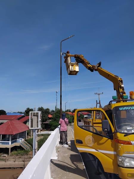 ลงพื้นที่ปรับปรุงซ่อมแซมสายไฟบนสะพานวัดหัวเวียงโดยการเดินสายไฟลอยไว้ด้านบนเพื่อป้องกันขโมยลักลอบตัดสายไฟฟ้า