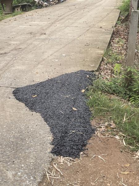 กองช่าง ลงพื้นที่ลงยางแอลฟัทล์ซ่อมแซมถนน หมู่ที่ 7 หมู่ที่ 8 ต.บ้านกระทุ่ม