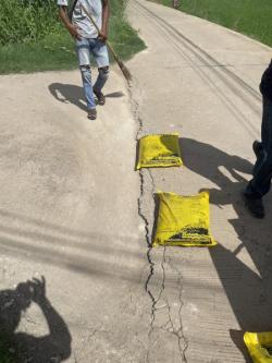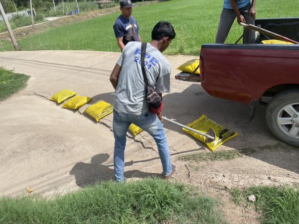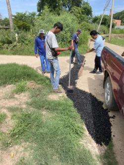 นายสุพล สนธิ รองนายกเทศมนตรีตำบลหัวเวียง ปฏิบัติราชการแทนนายกเทศมนตรีตำบลหัวเวียง มอบหมายกองช่าง ลงยางแอลฟัลท์หรือยางมะตอย ซ่อมแซมบริเวณถนนวงแหวนหมู่ที่ 1 ต.หัวเวียง