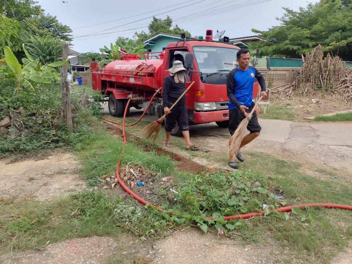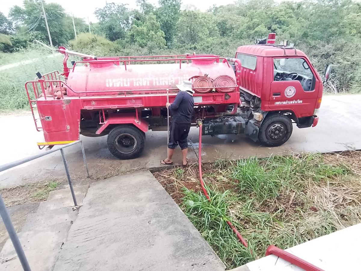 งานป้องกันฯ นำรถบรรทุกน้ำฉีดล้างทำความสะอาดศาลา SML หมู่ที่ 7 ต.หัวเวียง และศาลาเอนกประสงค์กลางหมู่บ้านหมู่ที่ 9 ต.หัวเวียง