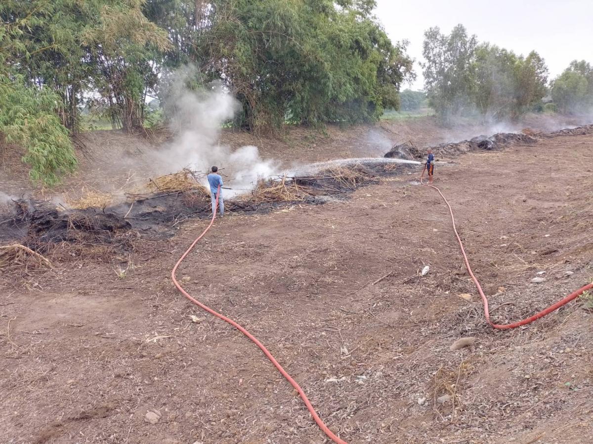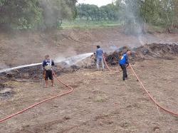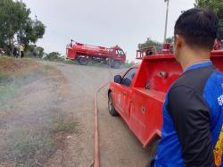 นายพิเชษฐ์ พวงสวัสดิ์ หัวหน้างานป้องกันและบรรเทาสาธารณภัยอาวุโส พร้อมด้วยเจ้าหน้าที่งานป้องกันฯ นำรถบรรทุกน้ำฉีดดับควันไฟที่ประชาชนถางป่าเผาหญ้า บริเวณบ้านพักคนชรา หมู่ที่ 3 ต.บ้านกระทุ่ม
