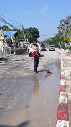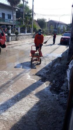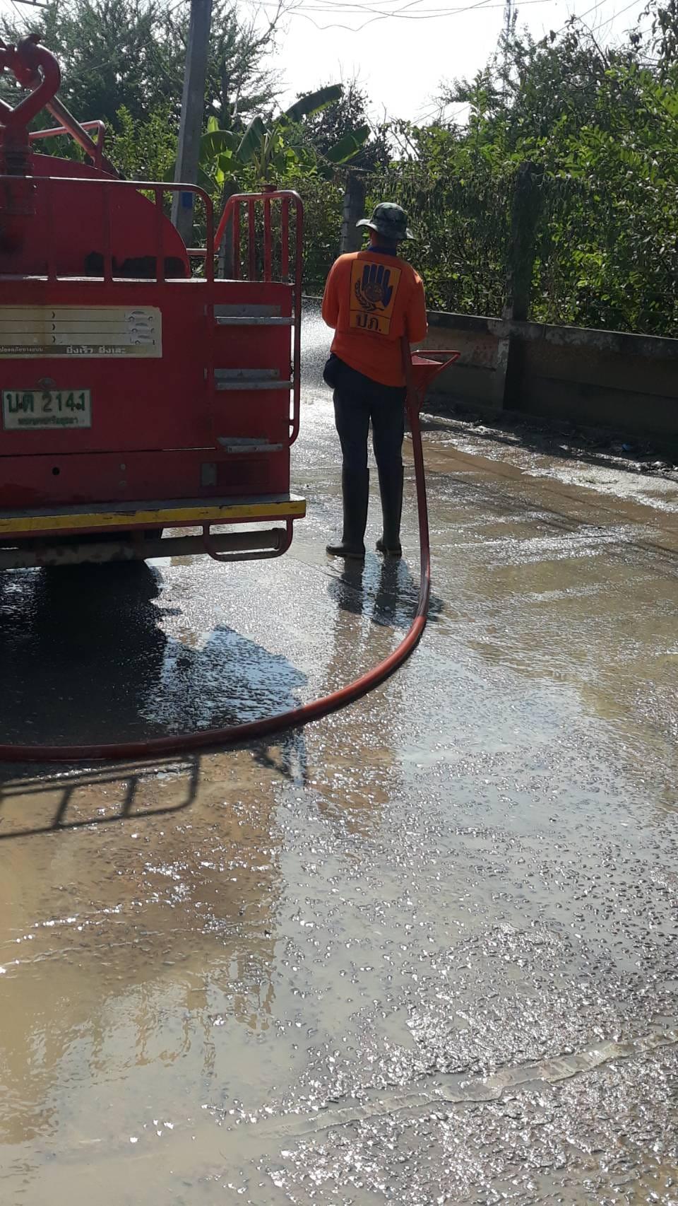 งานป้องกันฉีดล้างทำความสะอาดถนนบริเวณหน้าสำนักงานเทศบาลตำบลหัวเวียง