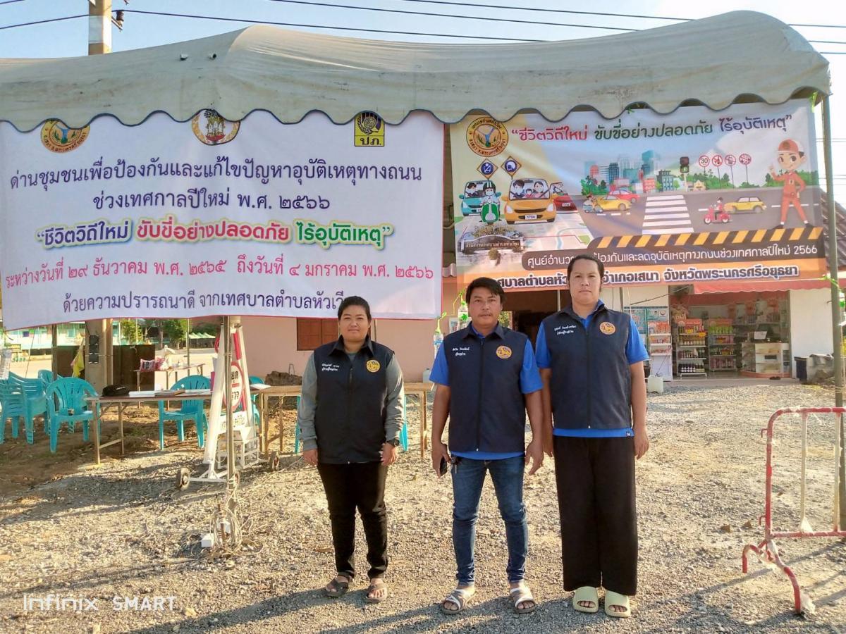 สมาชิกสภาเทศบาลตำบลหัวเวียงพร้อมด้วยพนักงานเทศบาลร่วมกับผู้ใหญ่บ้านหมู่ที่4,5,6 และหมู่ที่7,8,9,10 ตำบลบ้านกระทุ่ม ร่วมอยู่จุดตั้งด่านชุมชนเพื่อป้องกันและลดอุบัติเหตุทางถนนในช่วงเทศกาลปีใหม่ 2565